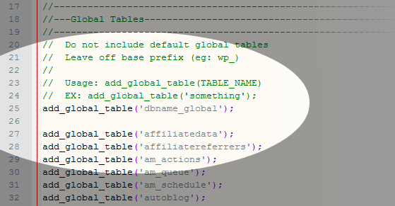 , you can leave this as-is. However, if you have changed the prefix of your current database tables, enter that here. - Line 21: Change
